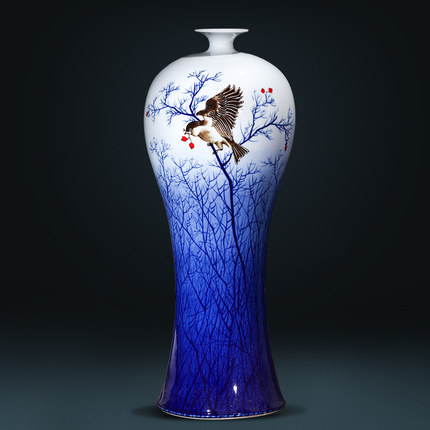 Vase antique en céramique bleu et blanc peint à la main pour fleurs