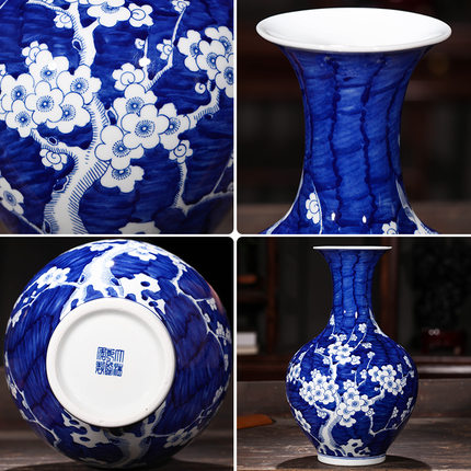 Vase en porcelaine bleu et blanc fait main pour fleurs