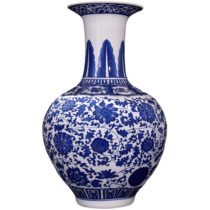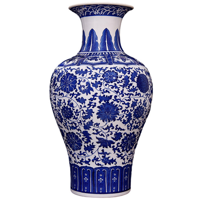 8: Blue and white tangled lotus ornamental vase: 48x30x6x- cm