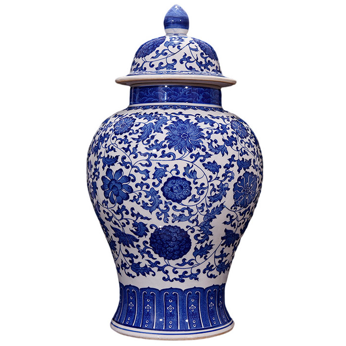 4: Blue and white tangled lotus jar with lid:49.5x27x12x- cm