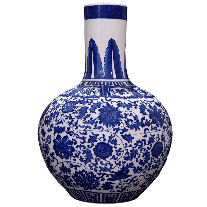 6: Blue and white tangled lotus celestial sphere vase:46x32x8x- cm
