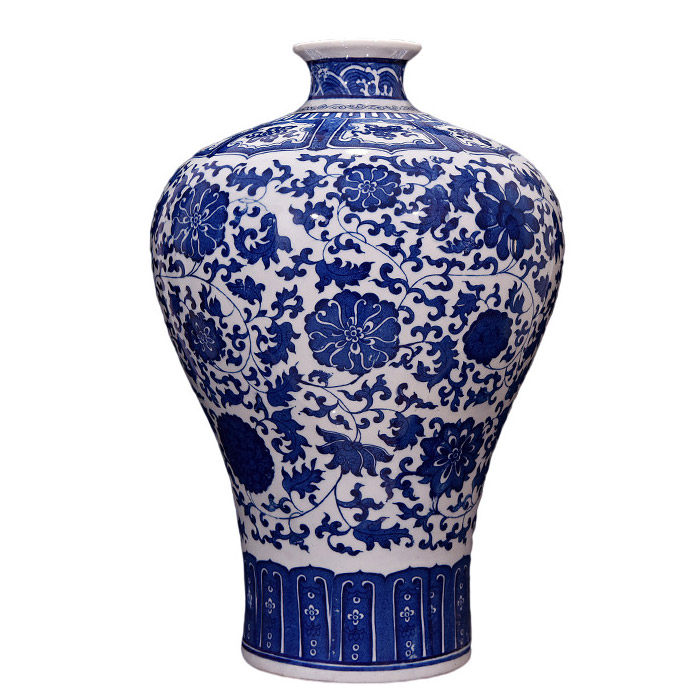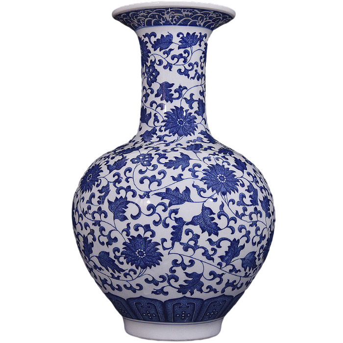 7: Blue and white tangled lotus mermaid vase:42x27x3.5x- cm