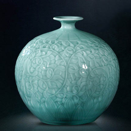 Jahrriesnge carving shadow blue glaze vase cna1302 Porcelaine