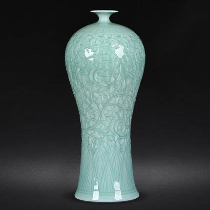 Jahrriesnge carving shadow blue glaze vase cna1304 Porcelaine