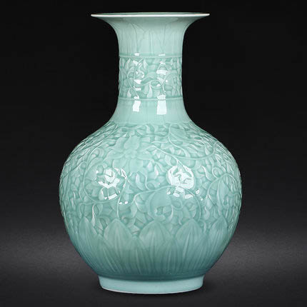Jahrriesnge carving shadow blue glaze vase cna1306 Porcelaine