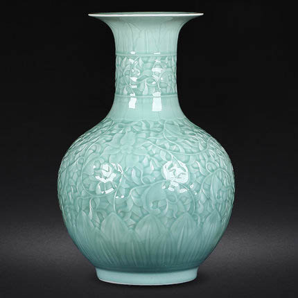 Jahrriesnge carving shadow blue glaze vase cna1307 Porcelaine