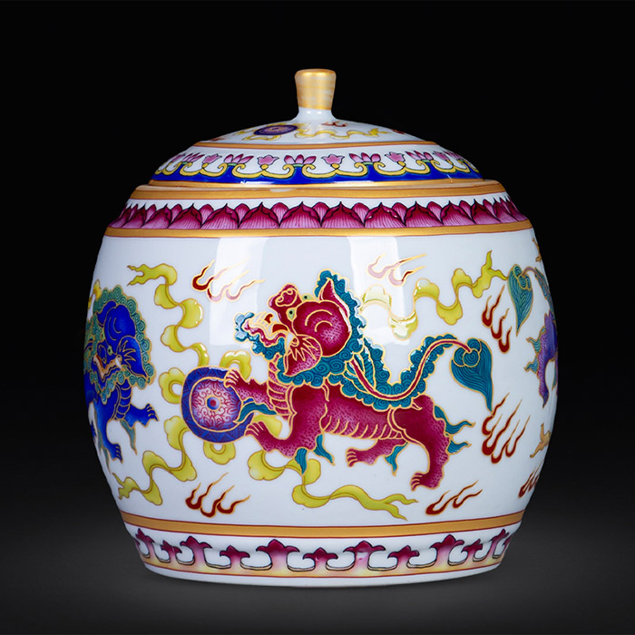 Pot en céramique de stockage rétro scellé hortensia Lion émaillé