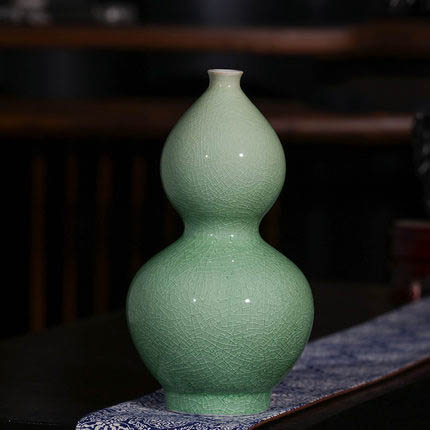 vase en céramique à glaçure fissurée en forme de gourde verte antique