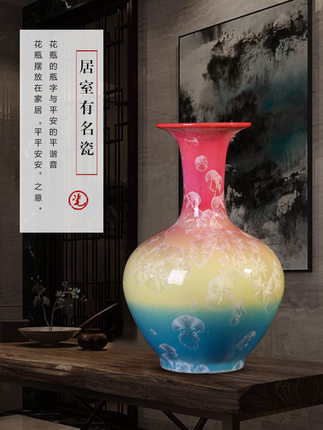 Crystal glaze red yellow blue ceramic vase