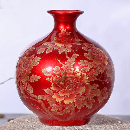 vases à fleurs en céramique émaillée de cristal chinois rouge