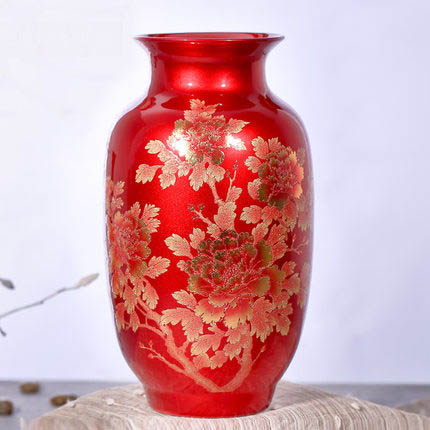 Vases rouges émaillés de cristal de fleur d'or de melon d'hiver