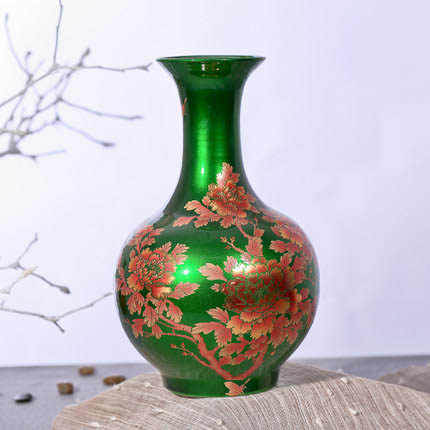 Vase à fleurs en céramique à glaçure cristal vert tendance