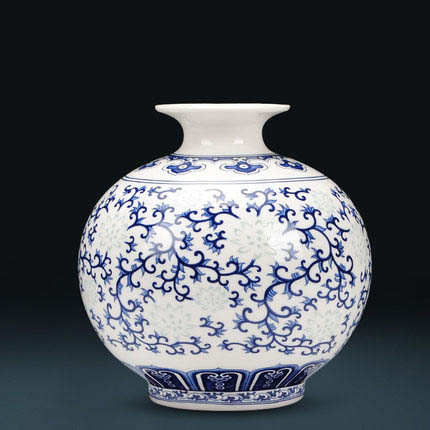 Vase fin en porcelaine exquise bleu et blanc en forme de grenade