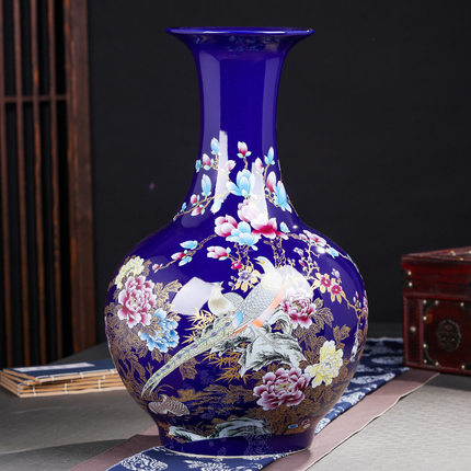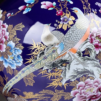 Vase de sol fleur de magnolia bleu royal et faisan doré