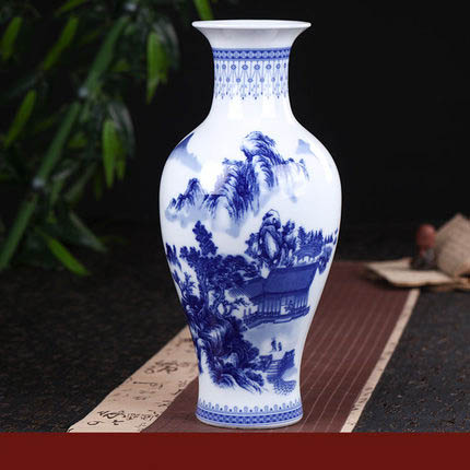 Vase éramique à motif paysage et pavillon à glaçure