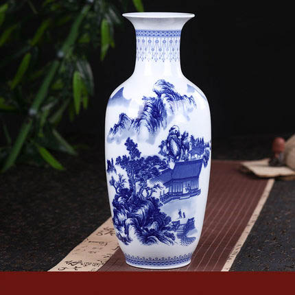 Vase en céramique à motif de pavillon de paysage à glaçure