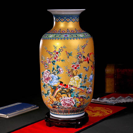 Grand vase décoratif en céramique en forme de melon d'hiver doré