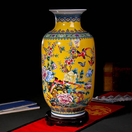 Decorative yellow winter melon shape ceramic large vase flower arrangement