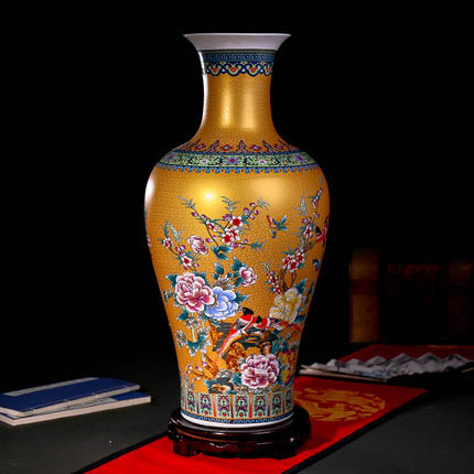 Grand vase en céramique émaillé doré en forme de queue de poisson