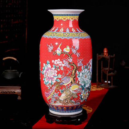 Grand vase en céramique en forme de gourde en cire rouge émaillée