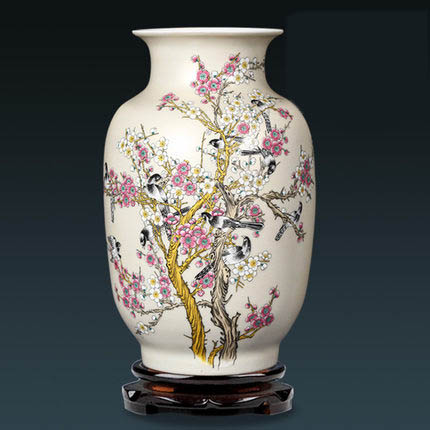 Vase en céramique Fleurs de prunier et oiseaux d'hiver Melon