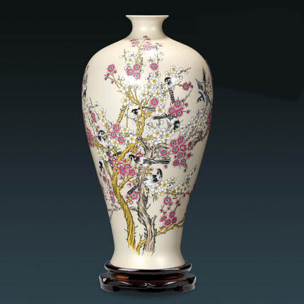 fleur de prunier et motif oiseau grand vase en céramique doré