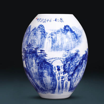 Vase en porcelaine de ma?tre paysage et pont peint à la main
