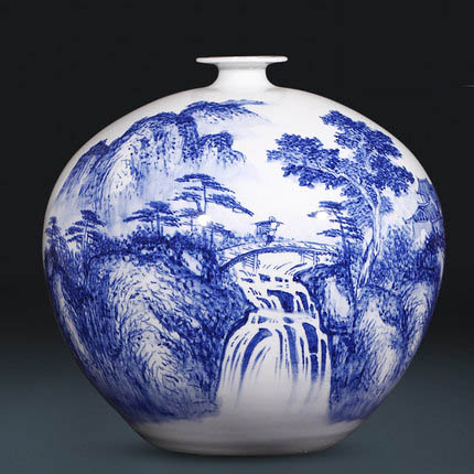 vase en céramique en forme de grenade paysage d'arbre peint à la main