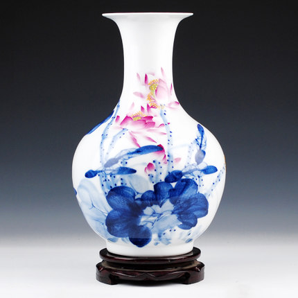 Vase en céramique de lotus peint à la main de maître de célébrité