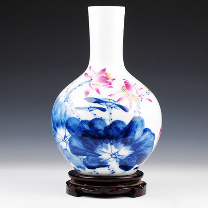 vase en céramique de forme céleste de lotus peint à la main de maître