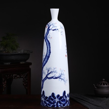 Master hand-painted blue and white porcelain vase