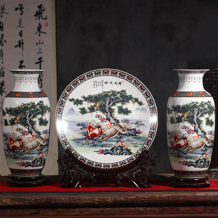 Jahrriesnge horses vase set 3pcs cna1045 Porcelaine