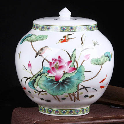 Vase en céramique Lotus et oiseau avec couvercle pour Flower Home