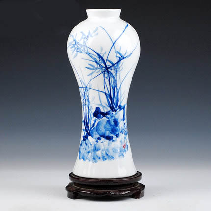 Vase en céramique bleu et blanc orchidée créatif peint à la main
