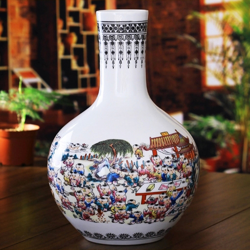 Jahrriesnge pastel one hundred children figure vase cna0784 Porcelaine