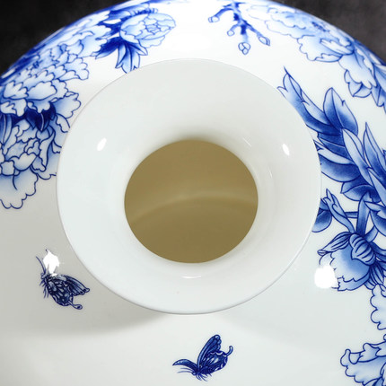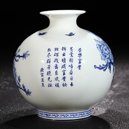 Vase en porcelaine bleu et blanc motif pivoine forme grenade