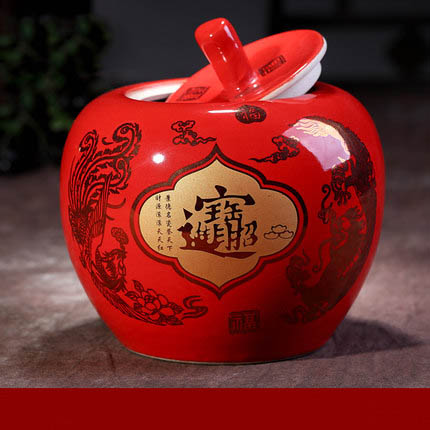 Pot de rangement en céramique rouge Good Fortune en forme de pomme