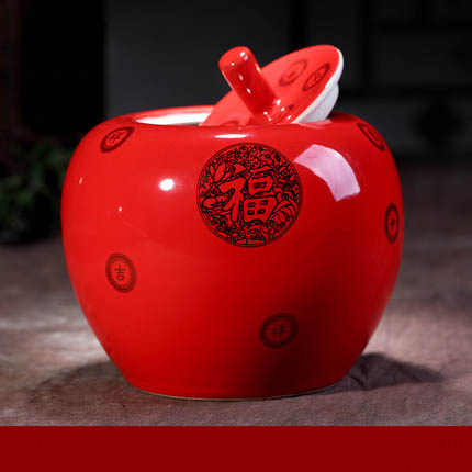 Pot de rangement en céramique rouge Good Lucky en forme de pomme