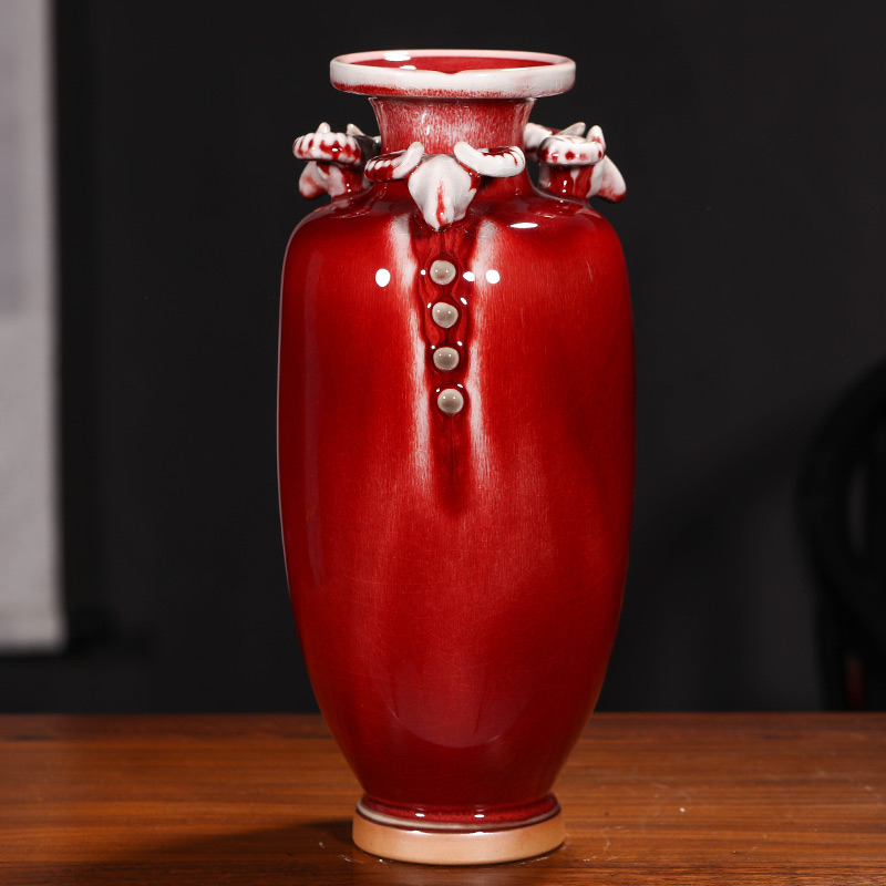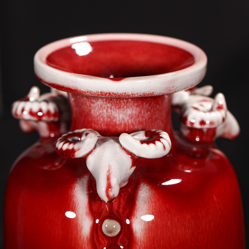 Three sheep red Jun porcelain ice crack home furnishing vase