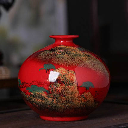 Jahrriesnge red landscape vase cna1355 Porcelaine