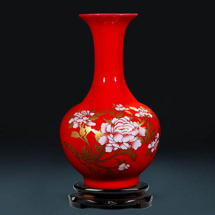 Jahrriesnge red peony flower vase cna0921 Porcelaine