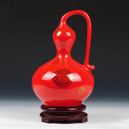 Jahrriesnge red peony gourd vase cna0687 Porcelaine
