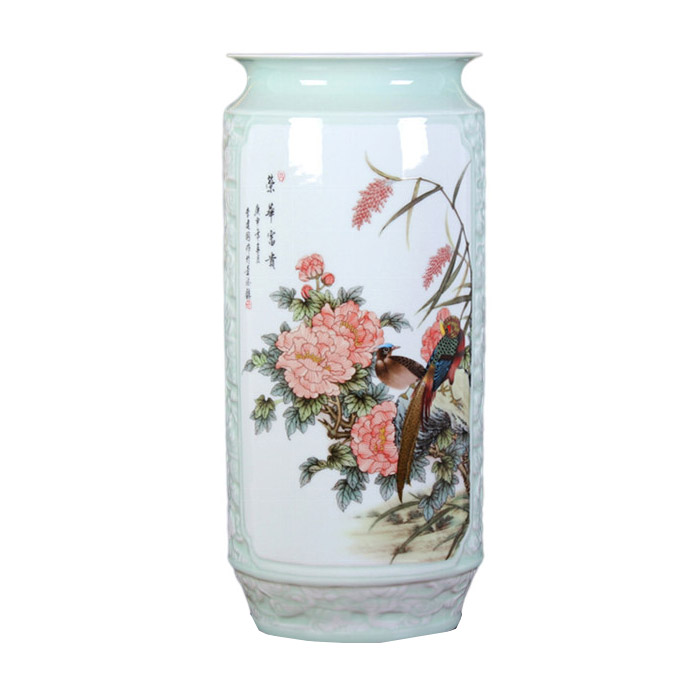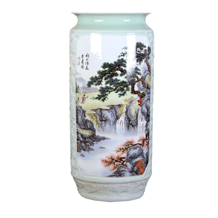 Jahrriesnge relief painting calligraphy cylinder vase cna1133 Porcelaine