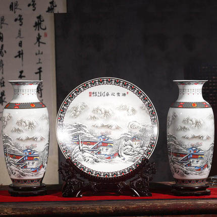 Jahrriesnge snow scene vase set 3pcs cna1044 Porcelaine