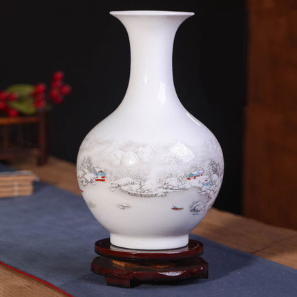 Petit vase ornemental en céramique à corps mince Snowy