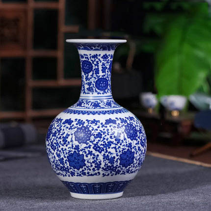 Vase ornemental en céramique Lotus bleu et blanc Jingdezhen