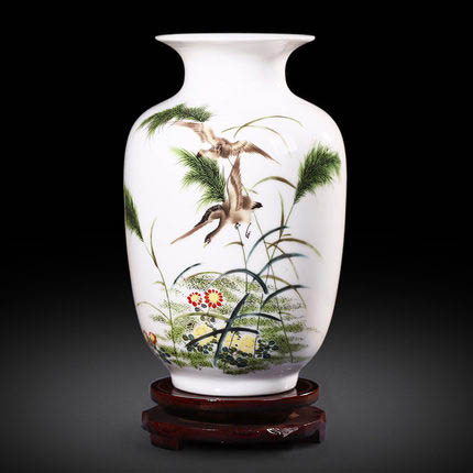 Vase en céramique melon d'hiver avec fleurs et hérons
