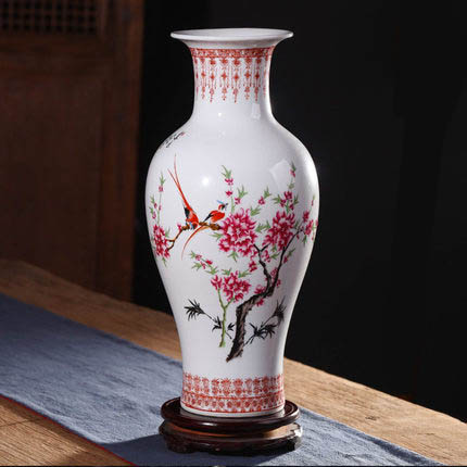 Vase en céramique oiseaux queue de poisson et fleurs de pêcher