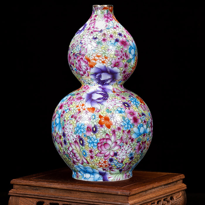 Vase en céramique à motif multi-fleurs de la dynastie Qing vintage