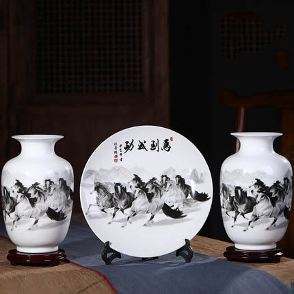 huit chevaux trois pièces en céramique petit vase décoration artisanat